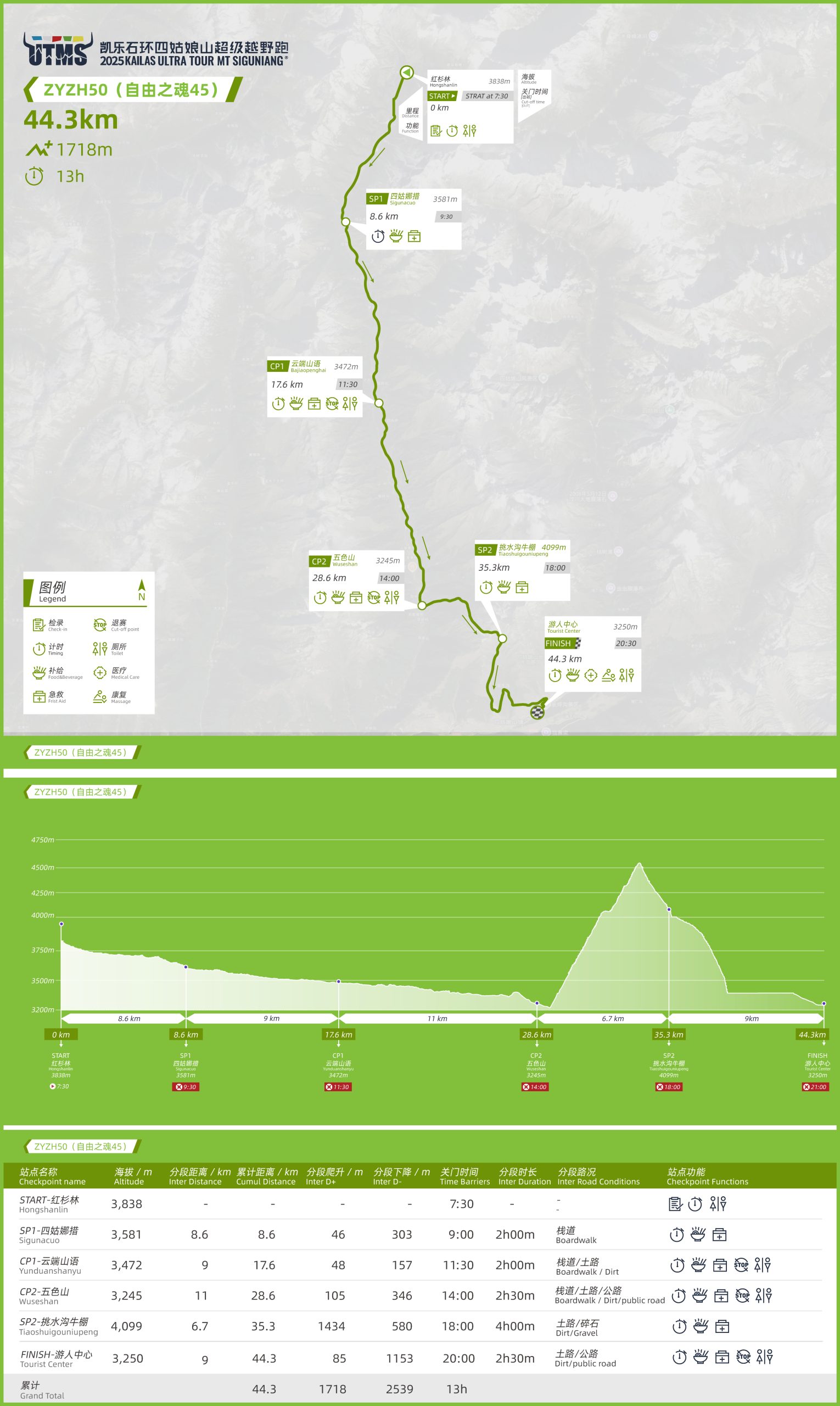 The greatest challenge comes in the latter part of the course: a high-altitude ascent over the Tiaoshuigou Pass at 4,560 meters. This segment features a mix of snow, ice, and loose rocks, with steep traverses and descents that are technically demanding and highly exposed. After crossing the pass, runners descend through Daniu Field, pass through Jinzhijie, and return to the finish line at the Visitor Center.